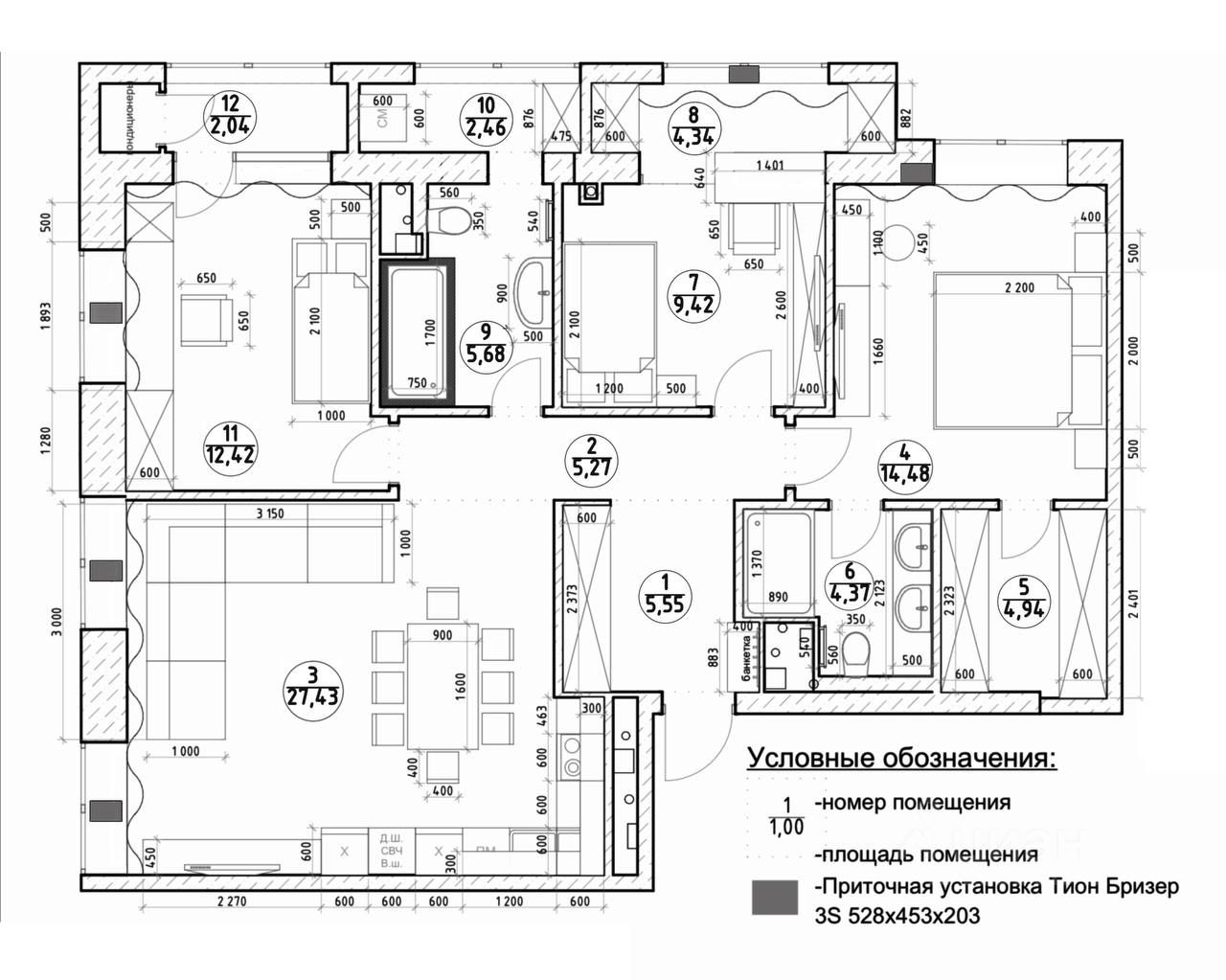 Продаётся 3-комнатная квартира евроформата в ЖК HEADLINER, общей площадью 94 кв.м., на 3 этаже, Без отделки. Высота потолков 3,4 м. 2 санузла. Просторная кухня-гостиная. Ниша для гардеробной. Окна в квартире выходят на разные стороны. Квартира готова к продаже: ключи получены, собственность оформлена, 1 собственник, полная сумма в договоре, возможна ипотека, 1 Собственник, квартира покупалась за наличные. Основные преимущества: - ЖК сдан в 2025 - Удобное расположение: близко метро, МЦД и центр города - 8 минут пешком до станции метро Шелепиха, Деловой Центр и Москва-Сити Большая кухня-гостиная площадью 19.9 м2 - Высокие потолки 3,4 м - 3 отдельные спальни - Большие окна квартиры выходят на 2 стороны - Виды: • на Москва-Сити • во двор - Гардеробная - Просторная ванная и дополнительный туалет, который можно переделать под дополнительную гардеробную. - Благоустройство внутренней территории: детские площадки, зоны отдыха, малые архитектурные формы, подземные паркинги. Площадь: 94 кв. м количество спален: 3 Площадь спален: 50,09 кв.м: 16,6 кв.м + 14,4 кв.м + 19,9 кв.м Нежилые помещения: 43,1 кв.м: Кухня-гостиная: 19.9 кв.м Прихожая: 5.3 кв.м, Холл: 5.7 кв.м Ванная: 6.1 кв.м Санузел: 2.7 кв.м Квартал HEADLINER входит в ТОП-10 самых продаваемых жилых комплексов бизнес-класса в Москве и признан одним из наиболее привлекательных для инвесторов объектов столичного региона. Расположение и транспортная доступность: HEADLINER расположен в престижном Пресненском районе Москвы, всего в двух минутах ходьбы от станции метро и МЦК "Шелепиха" и в 450 метрах от делового центра "Москва-сити". В 7 минутах пешком находится станция МЦД "Тестовская", обеспечивающая прямое сообщение с аэропортом "Шереметьево". Благодаря удобному расположению на пересечении крупных транспортных артерий, жители комплекса имеют легкий доступ к Третьему транспортному кольцу, Краснопресненской набережной, Кутузовскому проспекту и Большой Филевской улице. Инфраструктура: На территории жилого квартала работает филиал частной аккредитованной школы полного дня "Путь к успеху". Магазины, кафе и рестораны, банки, офисы и сервисные службы расположены на первых этажах зданий. В непосредственной близости можно найти лучшие школы ЦАО, включая ГБОУ "Романовская школа", физико-математическую школу 56 им. академика В.А. Легасова, школу с углубленным изучением английского языка 1232 "На Кутузовском", две гимназии и несколько общеобразовательных, спортивных и музыкальных школ. В пешей досягаемости находятся ТРЦ "Афимолл Сити", ТРЦ "Филион", ТРЦ "Европейский", фитнес-клубы World Class, и Wellness Club Nebo, отели Sky Moscow и Novotel, Экспоцентр и вся инфраструктура ММДЦ "Москва-Сити". Вблизи квартала расположены парк Причальный и Шелепихинская набережная. За 5-10 минут на автомобиле можно доехать до парков Фили, Красногвардейские пруды, Красная Пресня и парк Победы. До набережной Тараса Шевченко всего 8 минут пути, откуда открываются живописные виды на Headliner и Деловой центр.